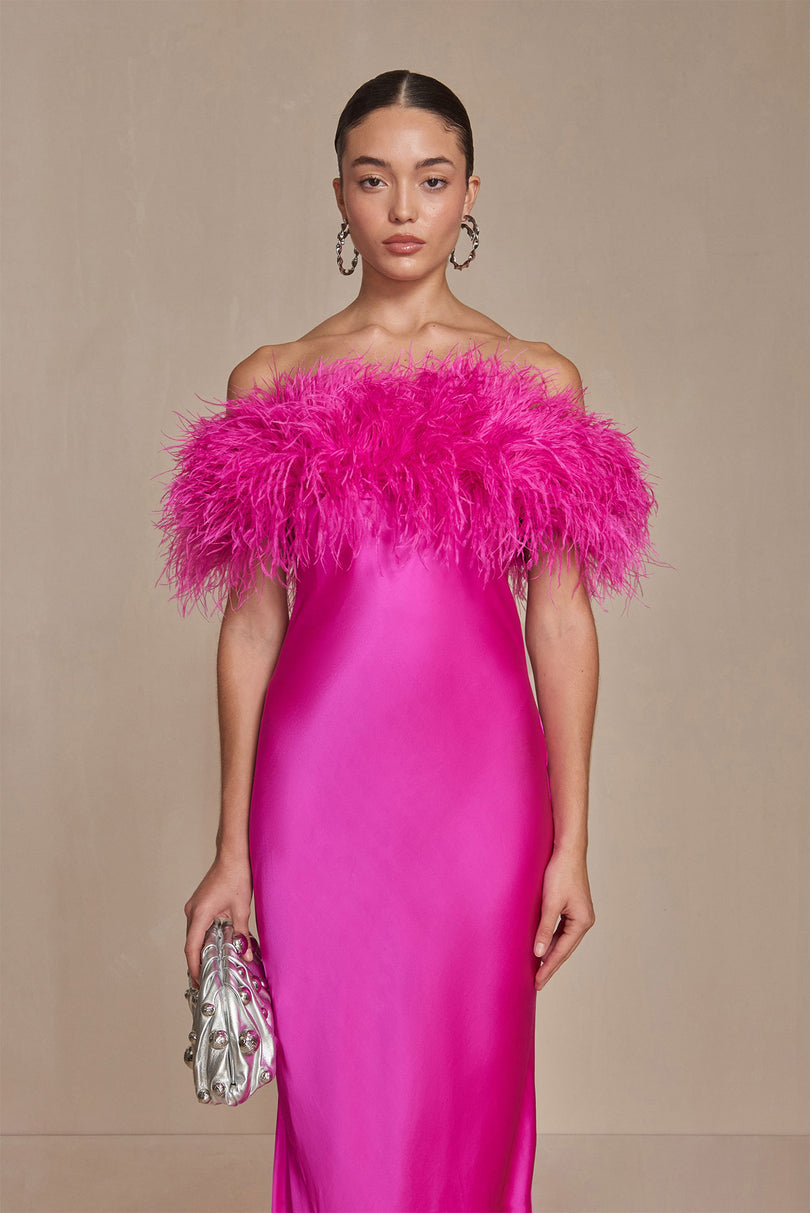 Plus Lilac Feather Trim One Shoulder Midi Dress Prettylittlething